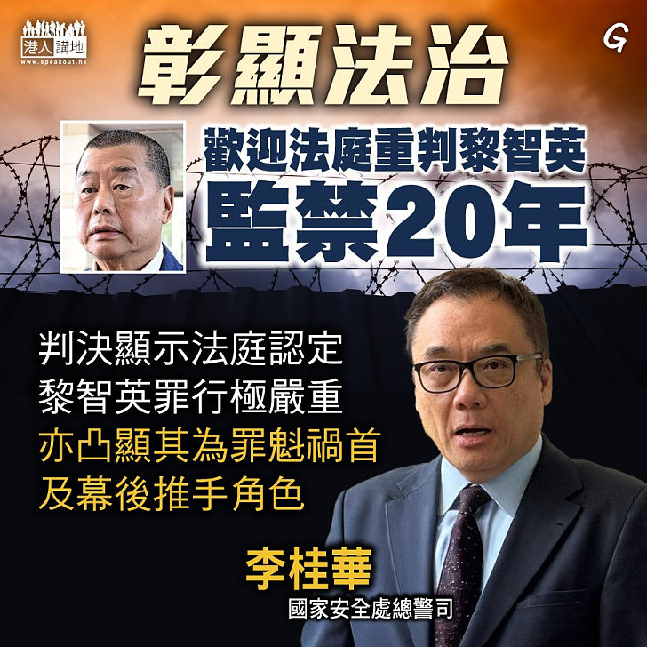 【黎智英案】駐港國家安全公署:黎智英案判刑結果彰顯...
