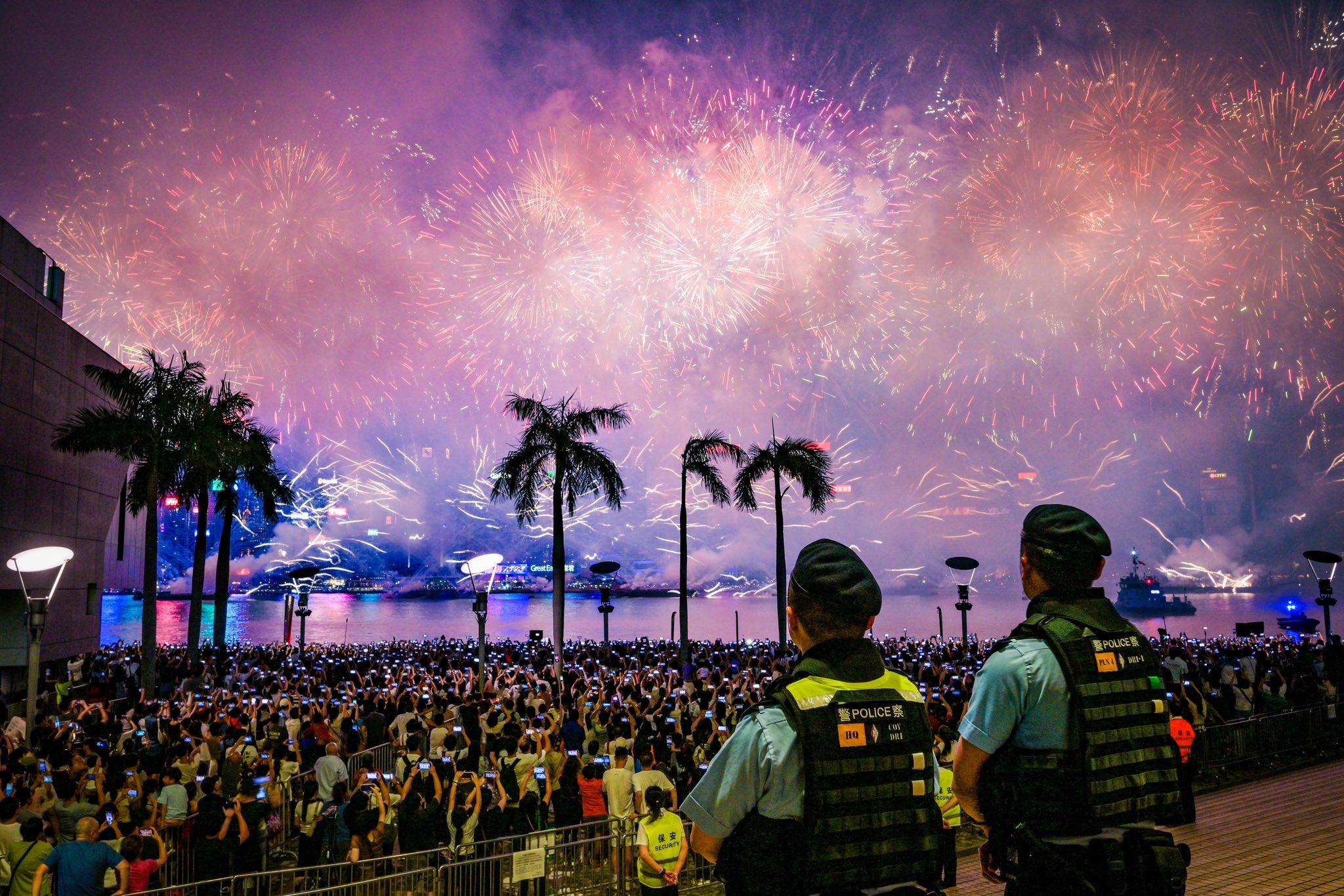 國慶煙花匯演昨晚(10月1日)在維多利亞港上演,慶祝中華人民共和國成立76周年。逾3萬枚煙花晚上8時開始在維港上空綻放,歷時23分鐘。警方估計,國慶煙花滙演吸引約34.4萬人到維港兩岸觀賞,超越原先預期。