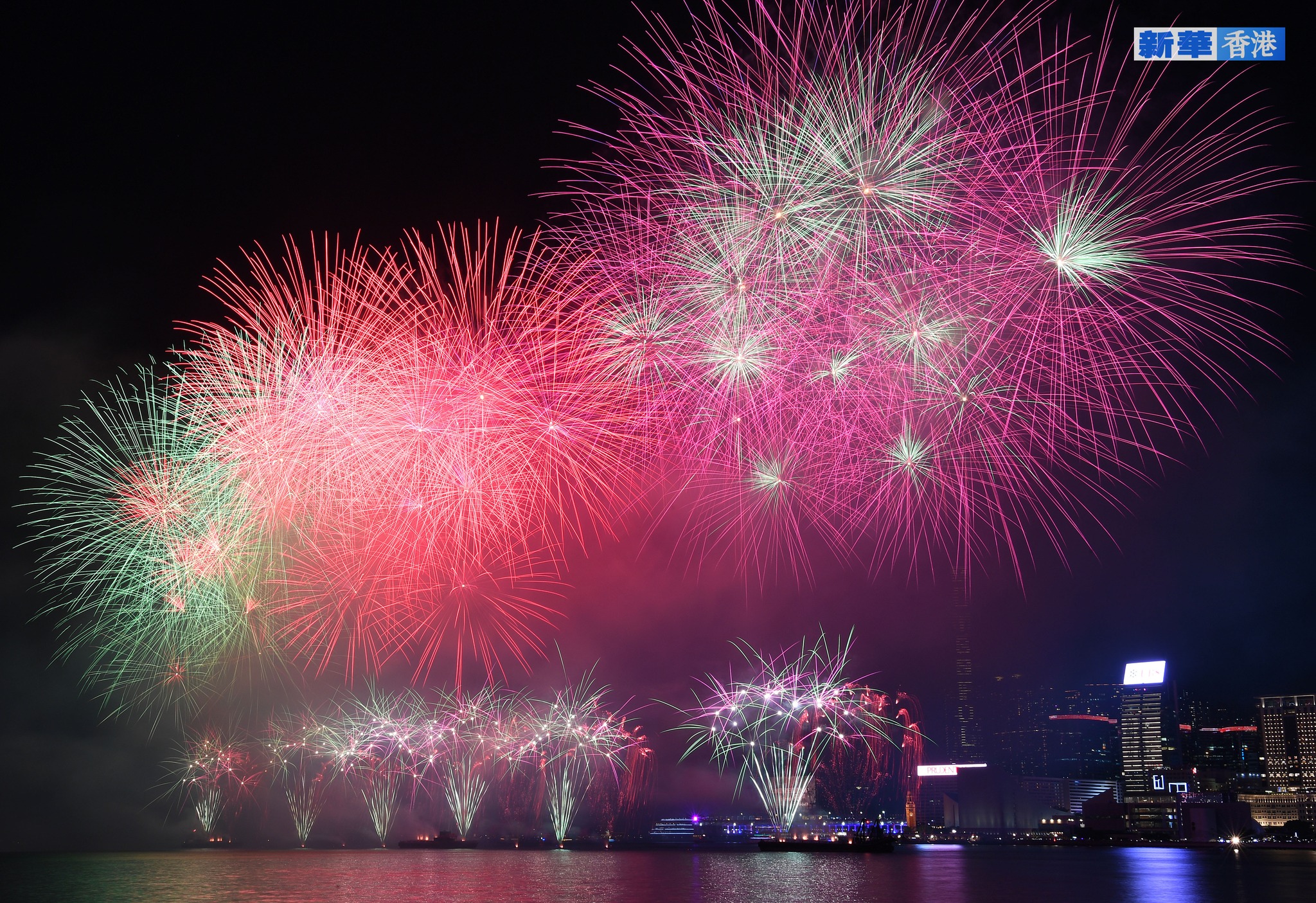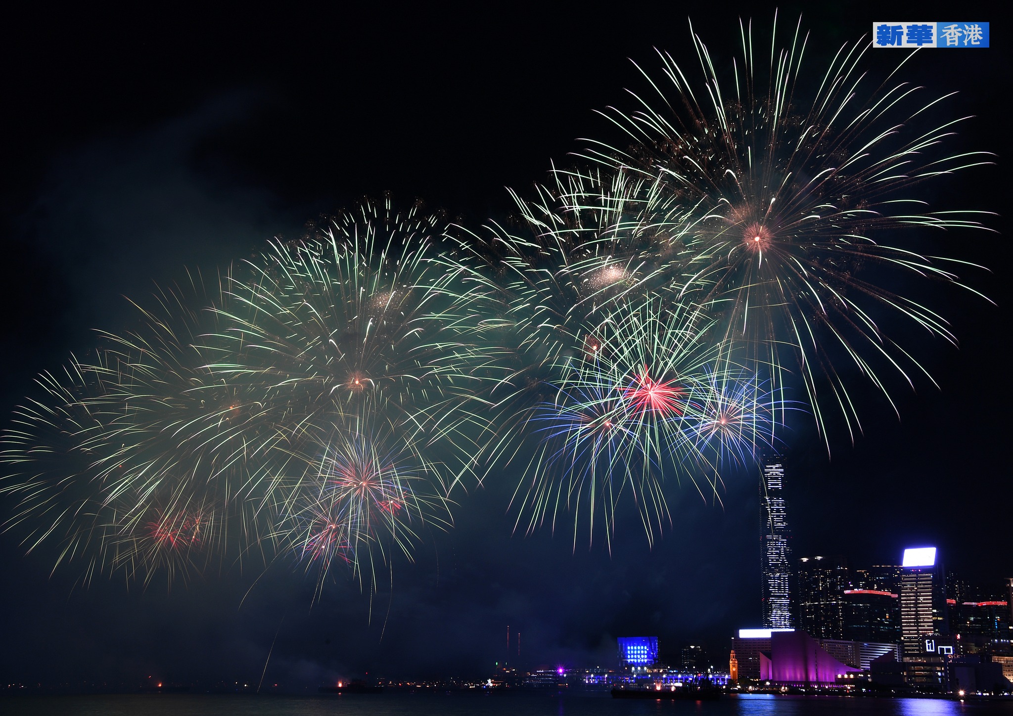 煙花匯演由文化體育及旅遊局統籌,主題為「維港煙花 閃耀中華」,融入東江水、大熊貓、全國運動會等元素。第一幕《煙花綻放賀國慶》以澎湃的煙花和音樂展現中華民族的奮鬥精神,為匯演揭開序幕。第二幕《東江之水越山來》帶出上世紀60年代香港經歷水荒時,國家對香港的關愛。