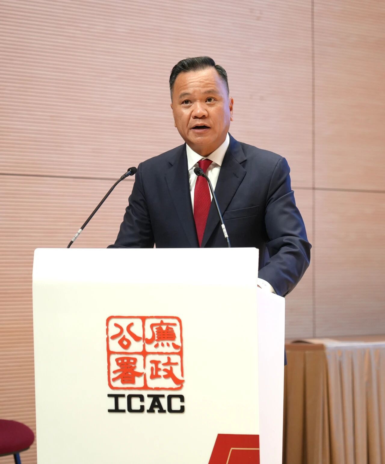 蘇清棟致辭時表示,廉政公署是香港廉潔法治和社會繁榮的堅實基石,自成立以來始終以肅貪倡廉為目標,有效保障了香港公平公正、安定繁榮;去年國際反貪局聯合會首次發表以香港命名的反腐敗合作宣言,充分體現了國際社會對「一國兩制」成功實踐和香港法治成就的高度認可,進一步鞏固了香港作為國際反貪樞紐的地位。他指出,選舉制度是貫徹落實「愛國者治港」根本原則、推動「一國兩制」行穩致遠的關鍵所在,聯誼會積極發揮示範帶動作用,加強市民對廉潔選舉意識,並與廉署攜手弘揚清正廉明的選舉文化,堅決維護公平、公正、誠實和安全有序的選舉環境。