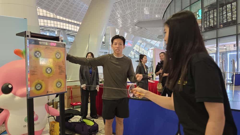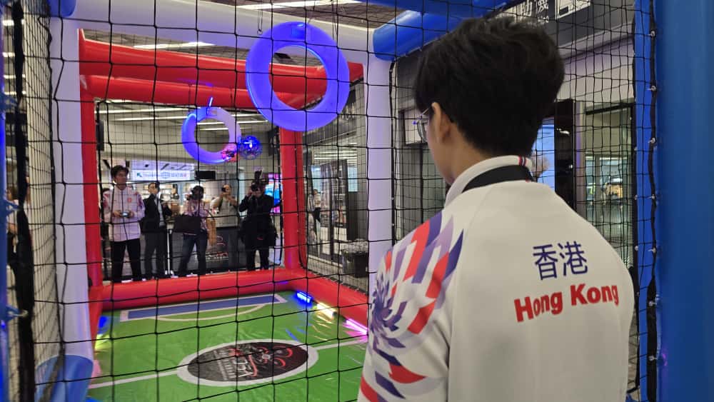 現場更設有以全運會吉祥物及比賽項目為主題的大型立體打卡裝置, 供嘉賓與市民拍照留念;同時設有無人機足球、劍擊及空手道體驗環節,讓參與者在互動中親身感受體育運動的魅力,於輕鬆氛圍中體現「更快、更高、更強、更團結」的全運精神。