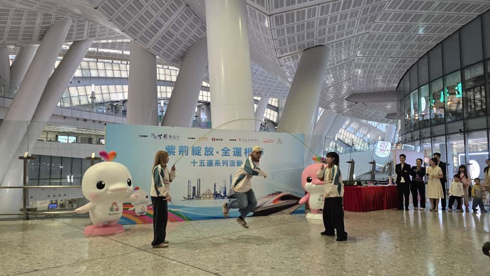 為配合第十五屆全國運動會的盛大開幕,凝聚社會各界關注以提升賽事聲勢,由紫荊雜誌社主辦,南洋商業銀行、ABC Pathways Group、中國香港無人機運動總會協辦,港鐵公司支持的「紫荊綻放·全運相伴」十五運系列活動啟動儀式,於今日(7日)在高鐵香港西九龍站B1層離港大堂舉辦。