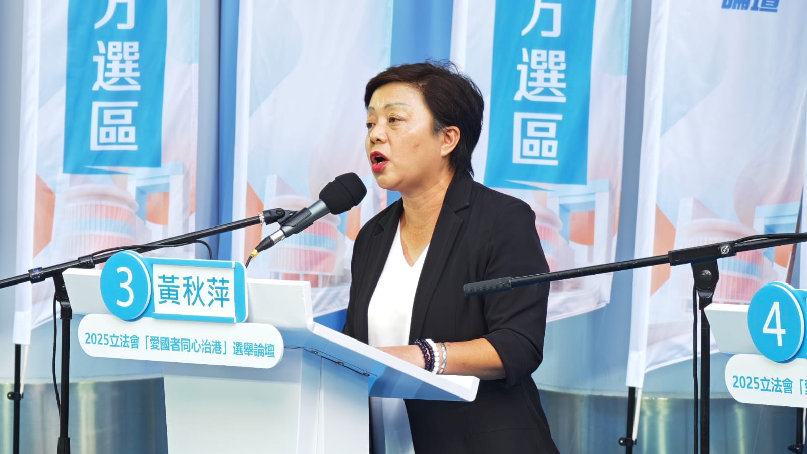 2025立法會「愛國者同心治港」選舉論壇今早(15日)移師到港島西地方選區,上午9時半在香港公園奧林匹克廣場舉行,出席的5位候選人分別為:1號自由黨楊哲安、2號新民黨陳家珮、報稱無政治聯繫的3號黃秋萍、4號民建聯陳學鋒及5號工聯會郭偉强。