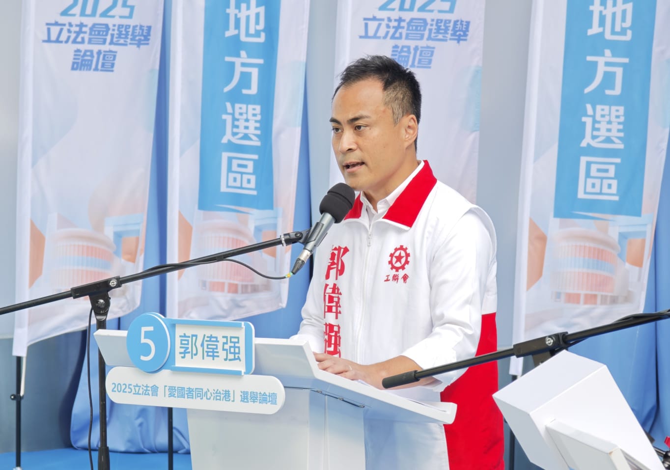 本身是立法會議員的5號郭偉强表示,他堅持投身愛國建制派,參選區議會,多年來堅決反「拉布」和支持止暴制亂。作為候選人中唯一的註冊社工,他指自己具備強大同理心,能更好接觸基層及聆聽每個階層意見。他表示,未來在立法會繼續加強職安宣傳、構建安全文化,關注過勞現象;提升家庭友善政策,配合政府鼓勵生育的大方向;加強外送員基本保障,提升打工仔的幸福感、獲得感和安全感。