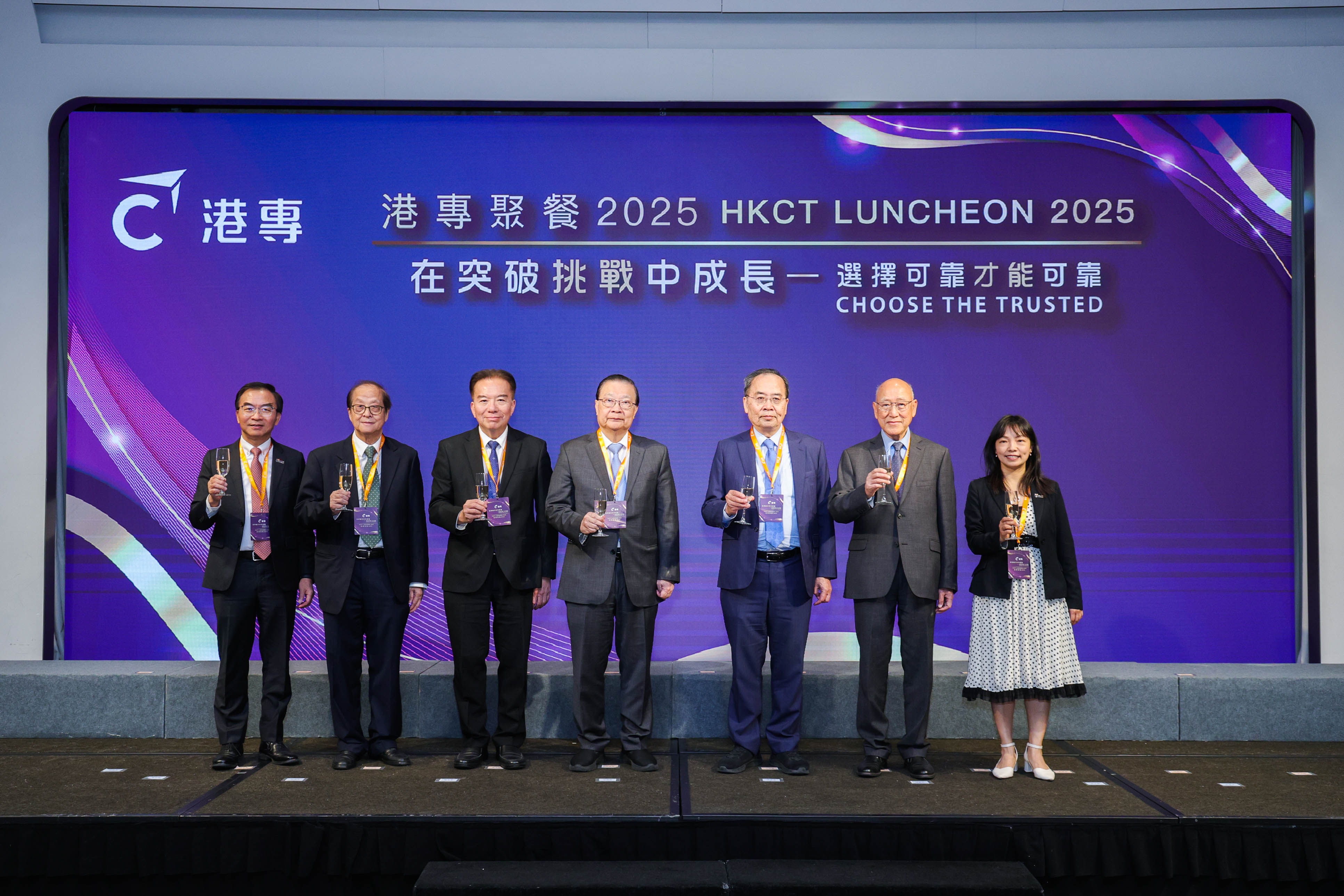 港專學院校董及香港專業進修學校校監范耀鈞教授主持祝酒儀式,多位主禮嘉賓及港專管治層成員一同舉杯,祝願港專繼續穩步向前,為香港及國家培育更多專業人才。港專將繼續深化產教融合與區域合作,向著專業進修大學的目標穩步邁進。