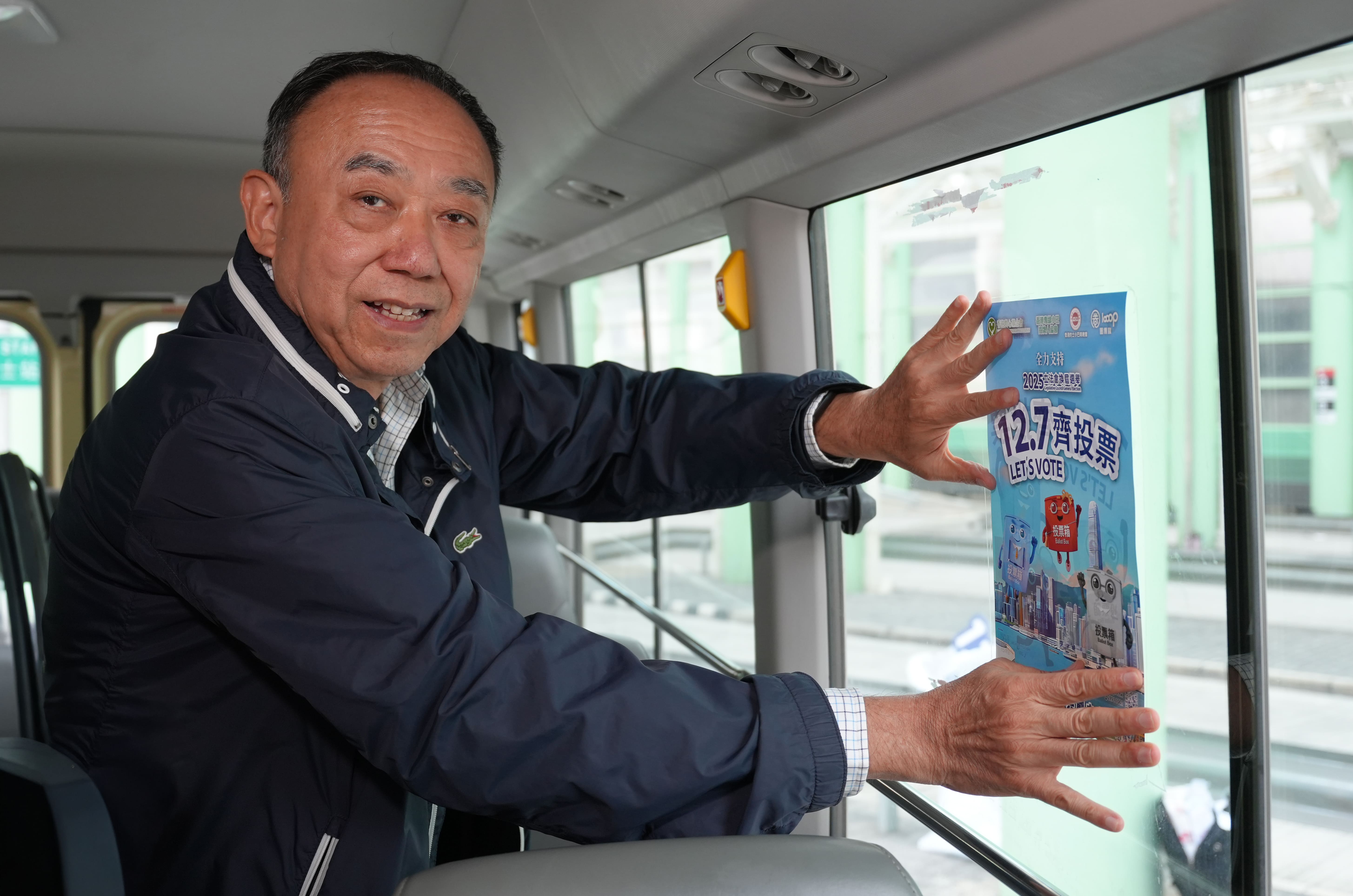 香港專線小巴持牌人協會代表陳志輝表示,專線小巴每日有過百萬市民乘坐,通過小巴去呼籲大家投票,是一件好事,「乘客們看到海報就會提醒他們,12月7日是一個大日子,千萬不要忘記去投票。」