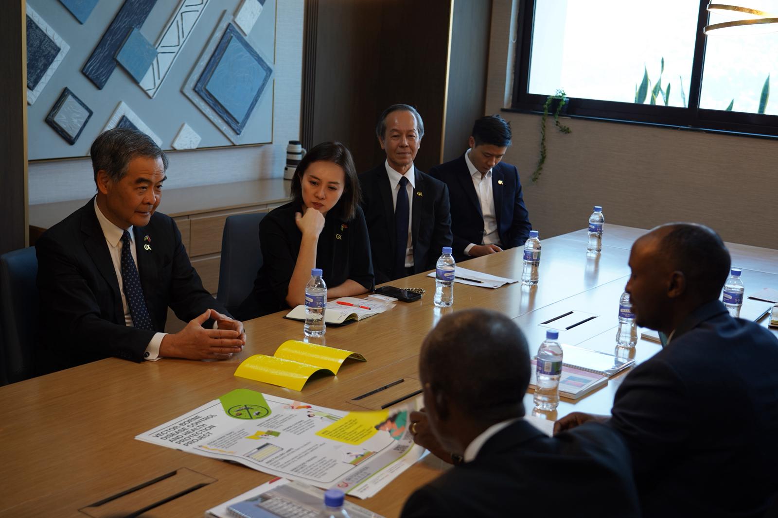 訪問期間,梁振英及共享基金會總幹事陳英凝教授先後與盧旺達總理賈斯廷‧恩森吉永瓦、衞生部部長恩桑齊馬納舉行會晤。雙方圍繞雙邊合作與健康發展策略深入交流,並就當地公共衞生和醫療領域的現狀交換意見。