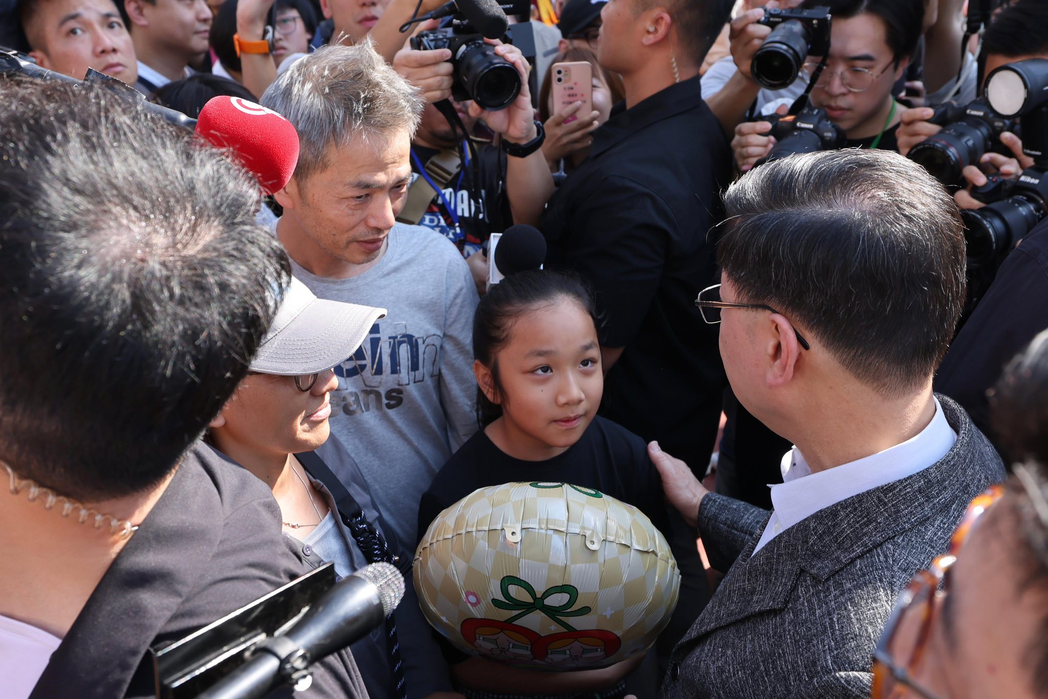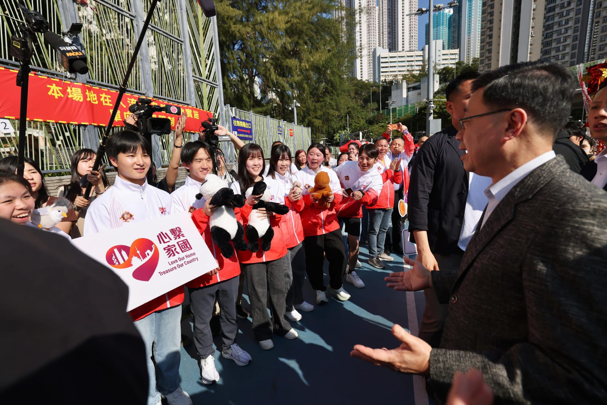 李家超又與在場的市民傾談,除了送上新年祝福,又說香港經濟會越來越好,穩步上揚。他隨後參觀了中華基督教基智中學的學生攤檔,對他們的標語「奔騰不息、自強向前」表示欣賞,形容學生們是社會的未來、希望、「新力軍」,鼓勵他們參與民政及青年事務局的青年工作,祝願他們學業進步、身體健康,又與一眾學生和警方吉祥物「提子」合照。