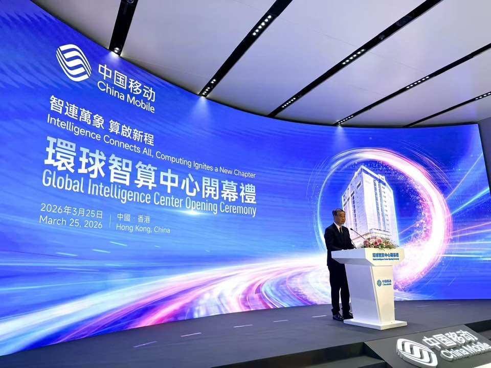 中國移動周三(25日)在香港舉辦「智連萬象,算啟新程」環球智算中心開幕禮。全國政協副主席、前行政長官梁振英,中聯辦副主任孫尚武,財政司副司長黃偉綸,中國移動董事長陳忠岳擔任主禮嘉賓,中國移動副總經理李慧鏑及產商界代表、核心合作夥伴等逾140位嘉賓出席開幕禮,共同見證環球智算中心正式啟用。