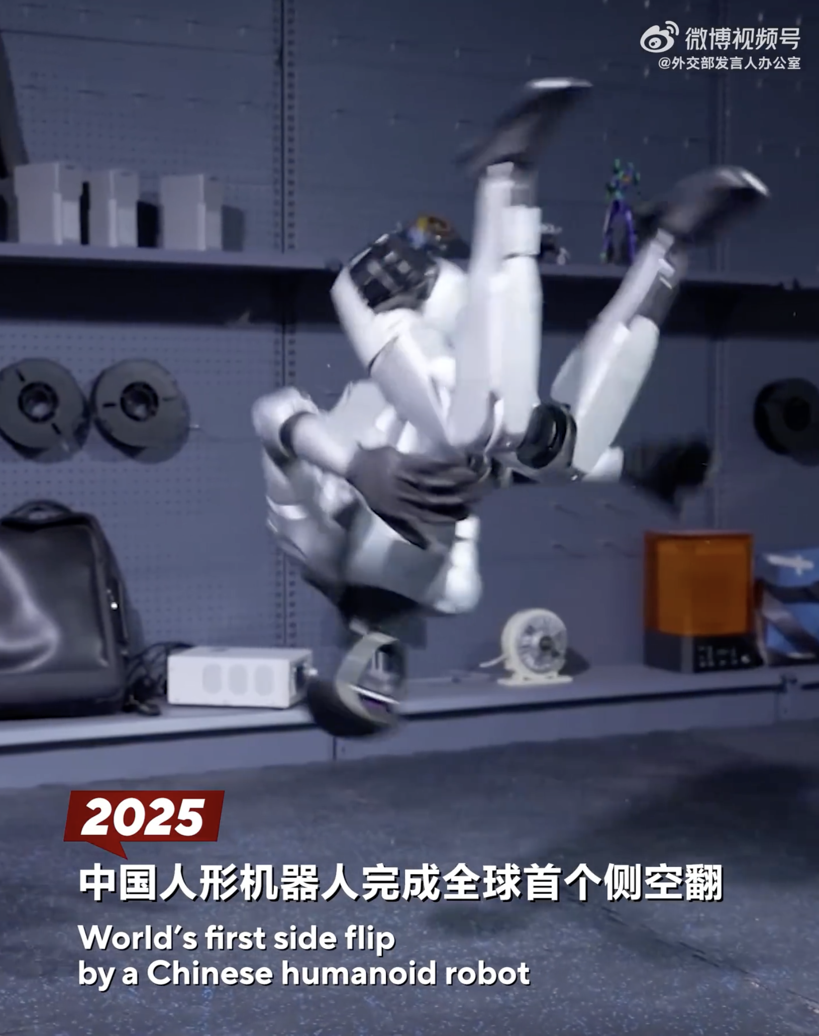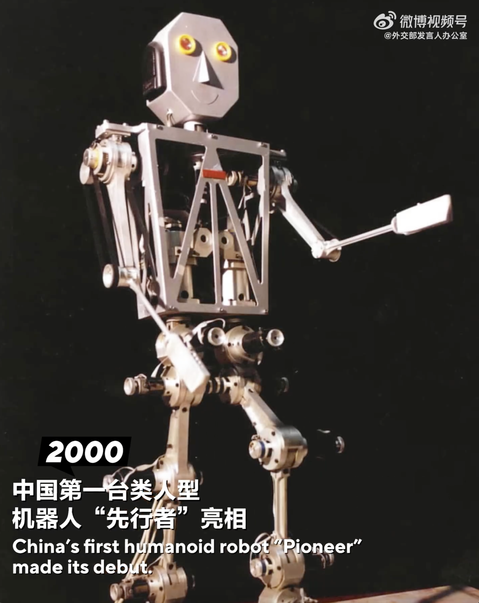 2000年,中國第一台類人型機械人「先行者」亮相。2025年,中國人形機械人完成全球首個側空翻。