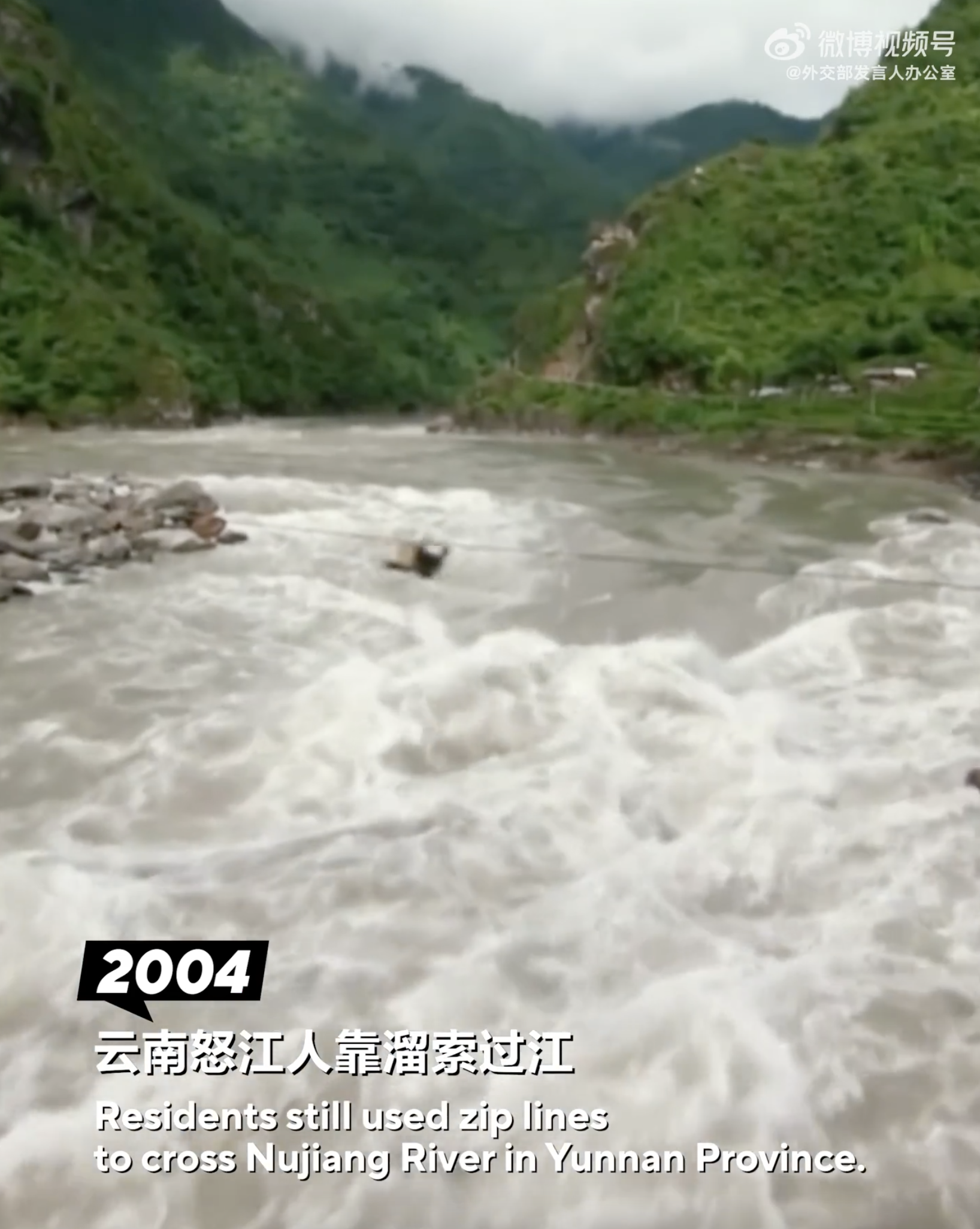 2004年,雲南怒江人仍靠溜索過江。2025年,雲南保(山)瀘(水)高速怒江大橋已經貫通。