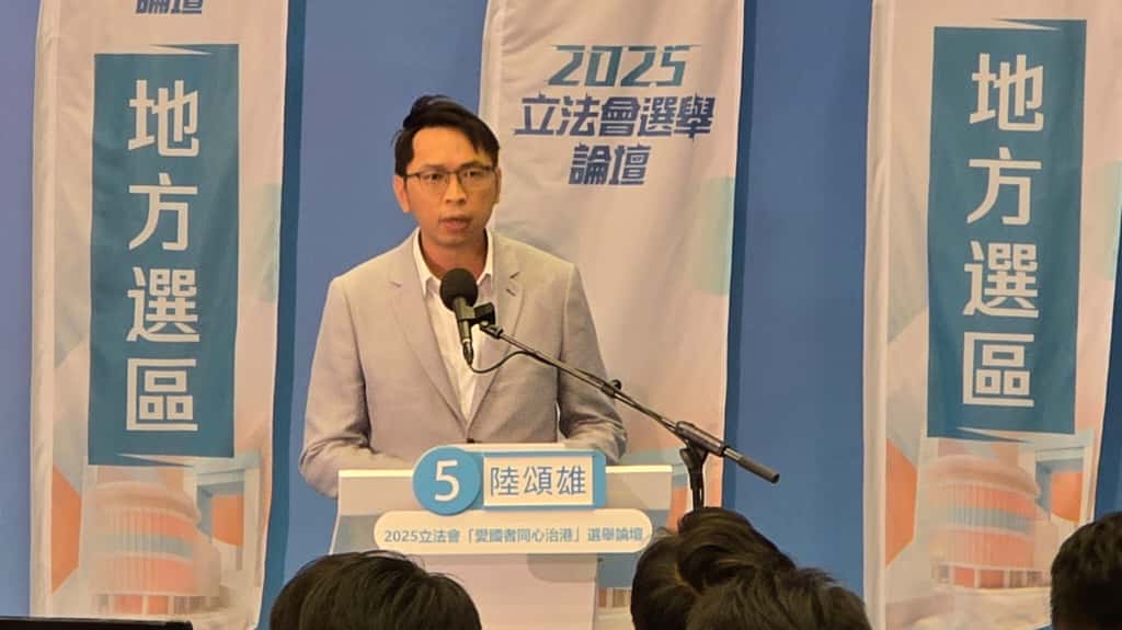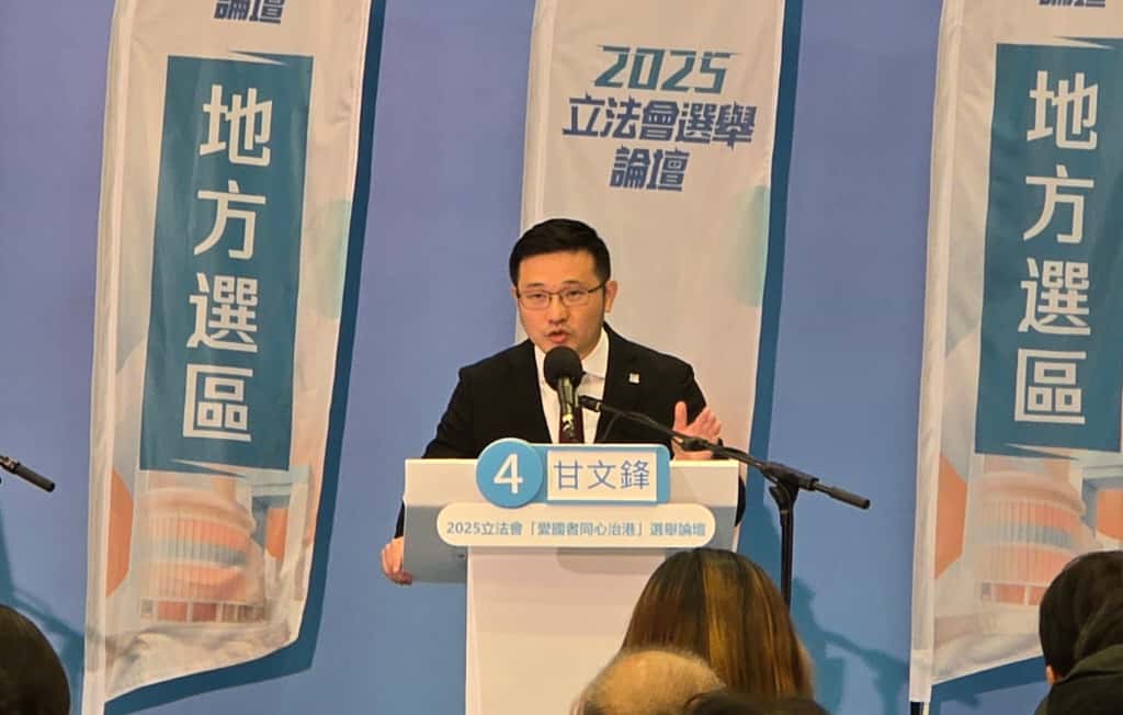 第四場2025立法會「愛國者同心治港」選舉論壇,下午4時半在元朗體育館舉行,新界西北5位候選人登場,分別是1號民建聯周浩鼎、2號實政圓桌莊豪鋒、3號報稱獨立的梁明堅、4號新民黨甘文鋒及5號工聯會陸頌雄。