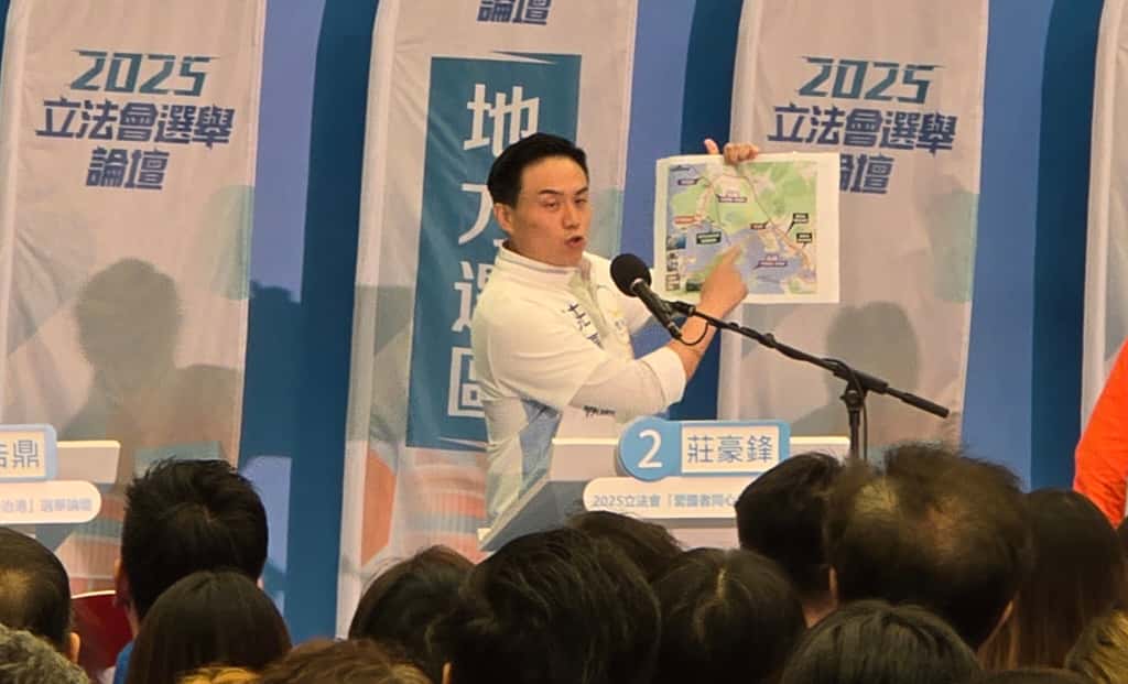最後總結環節,5位候選人各用1分鐘重申承諾:1號周浩鼎承諾連任後繼續實幹,推動北都與對外交流;2號莊豪鋒重申願接棒田北辰議員,為新界西北爭取交通與勞工權益;3號梁明堅以專業助力城鄉共融,打造有溫度社區;4號甘文鋒表示會以基層經驗與專業知識服務居民;5號陸頌雄則堅持為打工仔發聲,推動就業與民生改善。