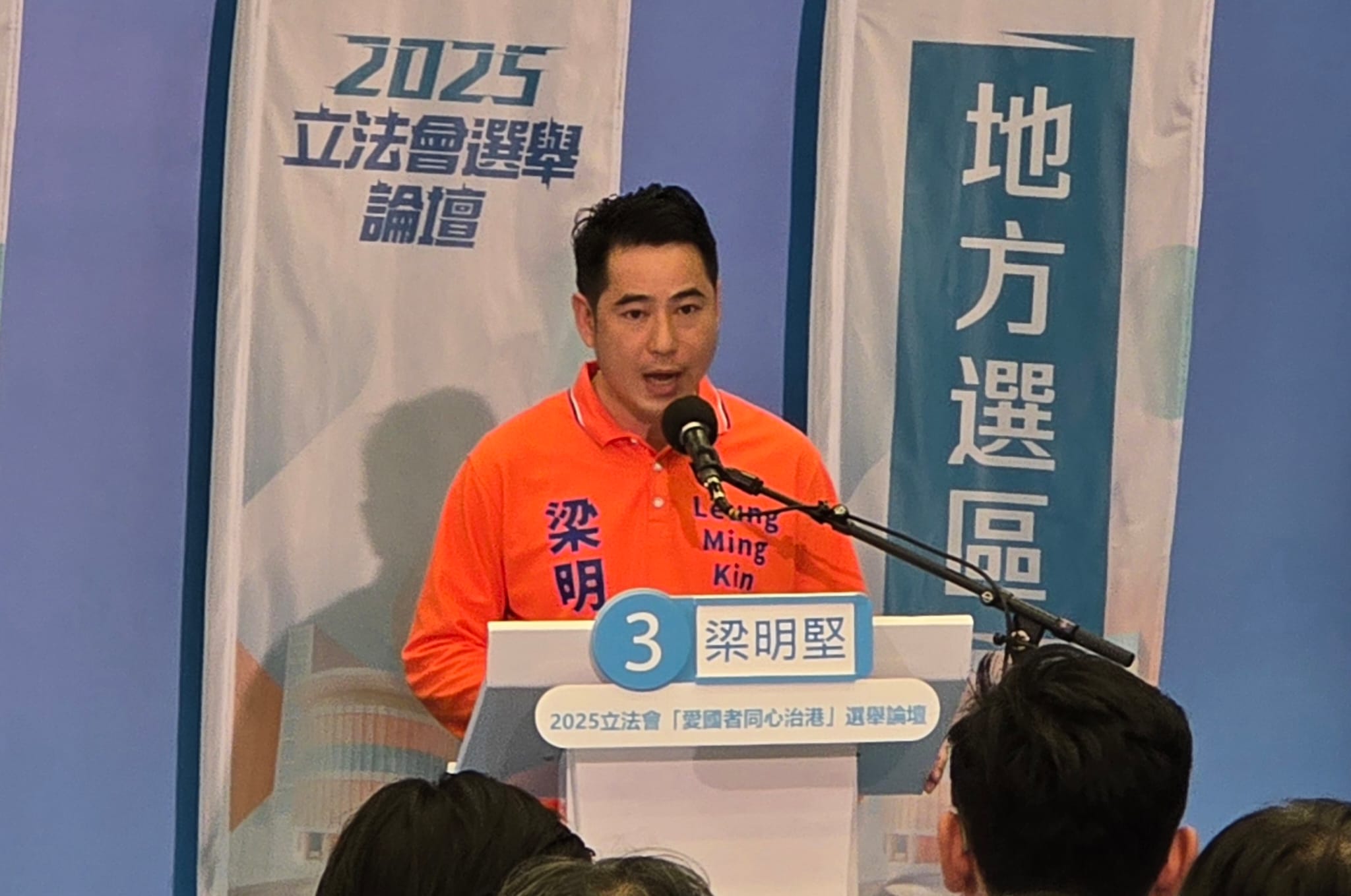 3號梁明堅表示是直選區議員、城鄉規劃顧問,土生土長新界人,亦是四孩爸爸。他主張「城鄉共融」,推動屯門繞道建設與港鐵屯門南延線進度;關注教育與醫療,建議增加國際學校學額、打造北部都會區醫療樞紐;並提出開放部分強積金用於撫育子女,減輕年輕家庭負擔。