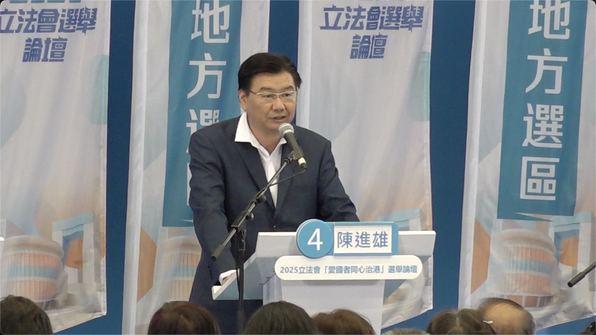 4號陳進雄作為醫療科技工程經理,他以「無黨派新選擇、實證為本、以民優先」定位自己。他的政綱主張會改變議會當前作風,強化議會與市民的溝通橋樑作用,運用數據反映多元民意,並承諾公幹不搭頭等艙、商務艙,杜絕公款浪費;經濟方面提議「多元經濟」,普及更多惠民的新經濟動力;民生方面,關注全民精神健康與大灣區通關便利化。他又以「撒種子」比喻選舉投票,表示只有將種子撒入泥土才能有結果。