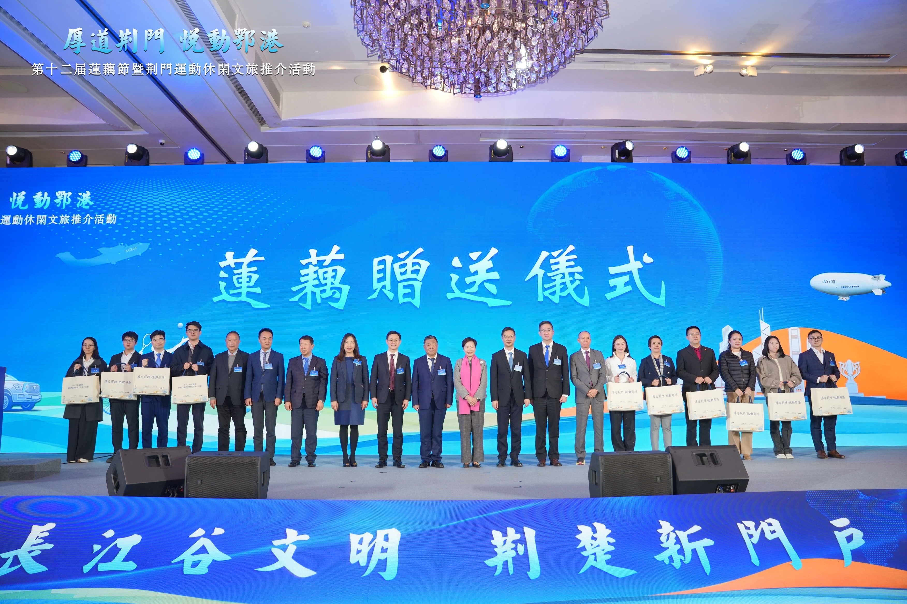 香港特別行政區第五任行政長官林鄭月娥,湖北省委常委、統戰部部長寧詠,紫荊文化集團董事長許正中,荊門市委副書記、市長陳家偉,香港商務及經濟發展局副局長陳百里,中聯辦社聯部副部長余學杰,香港民政事務總署署長杜潔麗,湖北省委統戰部副部長江浩,荊門市委常委、統戰部部長唐承鳳,香港湖北社團總會會長謝俊明等出席活動。